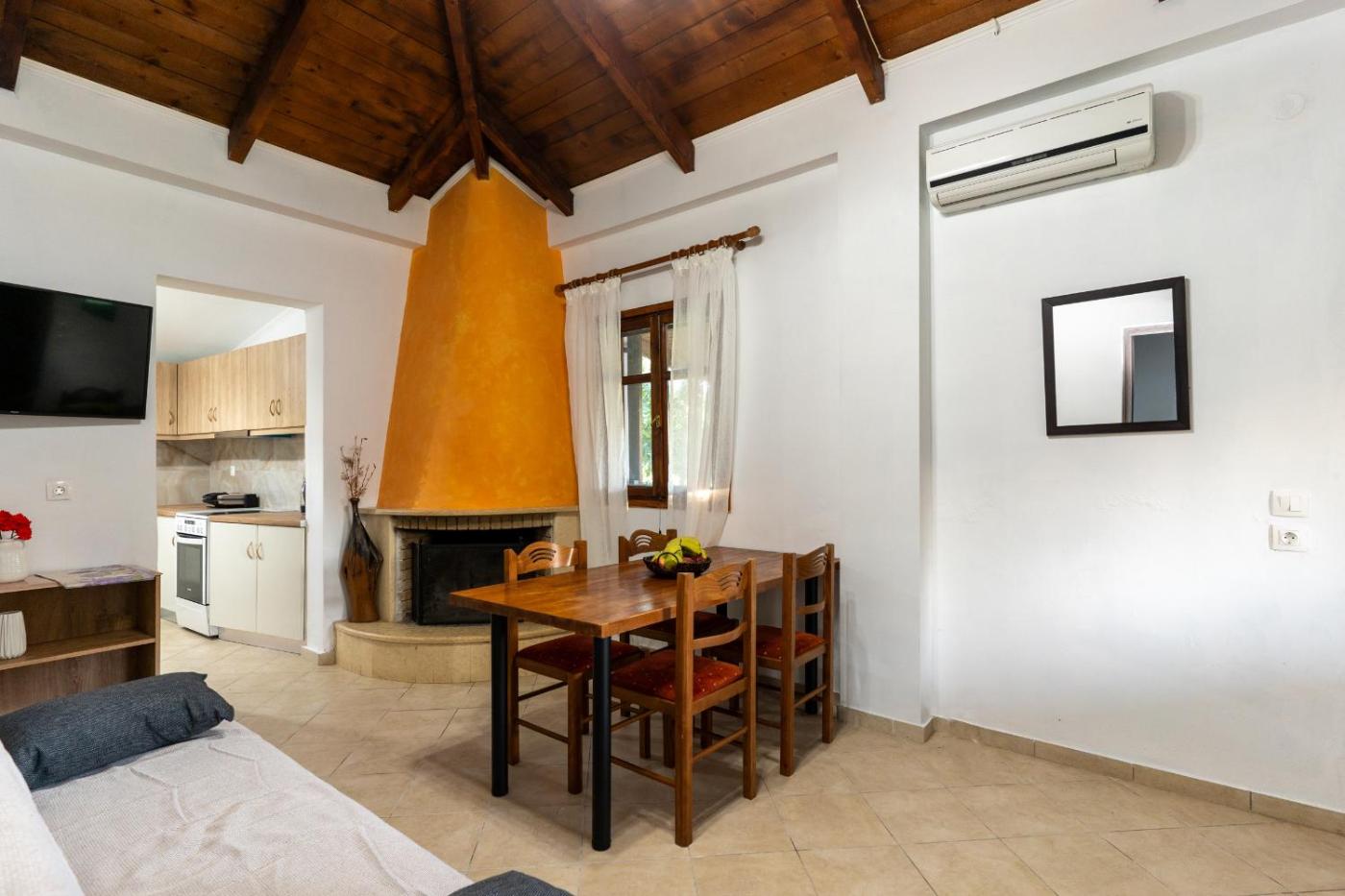 The spacious apartment with a balcony and mountain views has 1 bedroom, a living room, a flat-screen TV, an equipped kitchen with an oven and a microwave, and 1 bathroom with a bath. Guests can take in the ambience of the surroundings from an outdoor dining area or keep themselves warm by the fireplace on colder days.