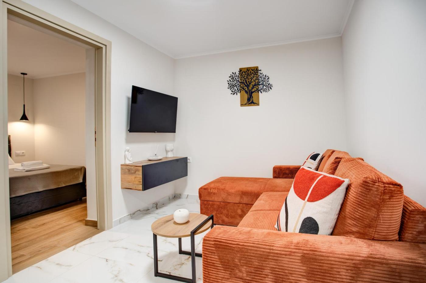 One-Bedroom Apartment with Garden. This apartment is comprised of 1 living room, 1 separate bedroom and 1 bathroom with a shower and free toiletries. The fully equipped kitchen features a stovetop, a refrigerator and kitchenware. Featuring a terrace, this apartment also offers air conditioning, a tea and coffee maker and a flat-screen TV. The unit offers 2 beds.