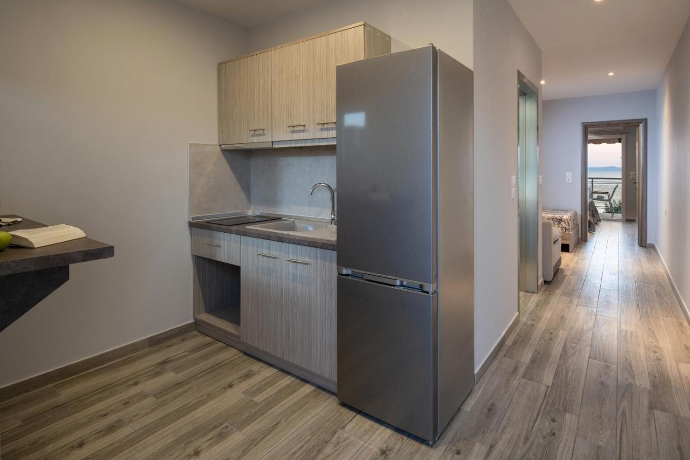 King Suite with Sea View. Boasting a private entrance, this air-conditioned suite comes with 2 bedrooms and 1 bathroom with a shower. Guests can make meals in the kitchenette that features a stovetop, a refrigerator and kitchenware. Featuring a terrace with sea views, this suite also features soundproof walls and a flat-screen TV with satellite channels. The unit has 3 beds. ;